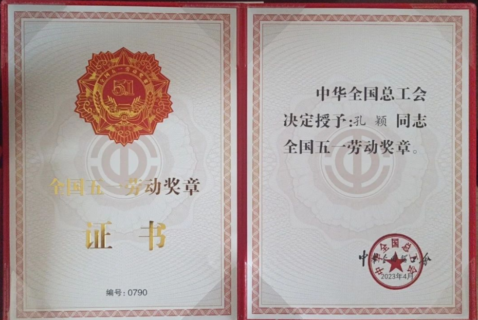 喜報(bào)!我公司孔穎同志榮獲全國(guó)五一勞動(dòng)獎(jiǎng)?wù)?/h1>